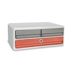 Promotes good posture. Ultra-sturdy module to support your screen (up to 5kg). 2 half-drawers for storing your office supplies and computer accessories. 1 large drawer for documents up to 24x32cm in size, tablets and laptops up to 14 inches.