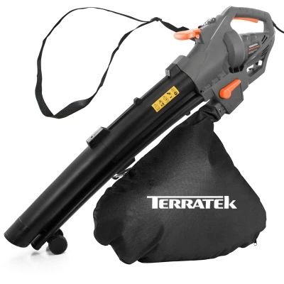 Terratek Corded Leaf Blower and Garden Vacuum 3000W, 3 in 1 Lightweight Mulcher, Vacuum, 35L Blowers Collection Bag, 10m Cable, Wheels & Shoulder Strap Included