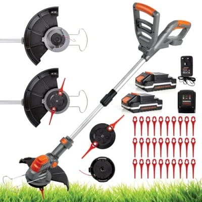 Terratek Cordless Strimmer 20V 1HR Fast Charge Battery Garden Strimmer, Lightweight Grass Cutter Machine 30x Blades, Trimmer with 2x Batteries and Charger Included