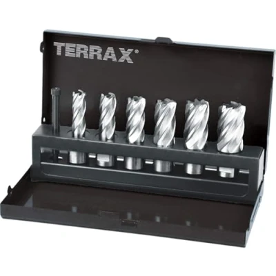 Set of 7 hollow core drill bits with Weldon shank Sizes ranging from 19 mm Includes guide ejector for easy removal of drilled material Ideal for drilling large holes in metal and other materials, Manufacturer: Ruko