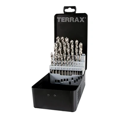 Discover the complete set of 25 DIN 338 drill bits from the brand TERRAX, model A214215. Made from HSS, this tool is durable and ideal for professionals as well as DIY enthusiasts. Enjoy the superior quality of TERRAX for all your projects.