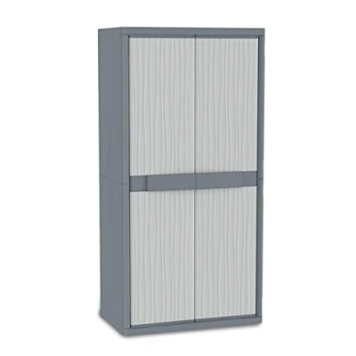 Terry, Organizes your space: italian company recognized for its innovative products, with a unique design. It has been organizing people's space since 1961 Features: 2-door wardrobe with 1 large internal shelf, 3 small shelves and 1 broom compartment that adapts to all needs Thought for: solve space organization problems. Excellent for organizing the garage, garden, pool area, decks and office Easy opening, patented closure: the doors open 180 °. Patented windproof closure. Possibility of padlock (not included) EcoFriendly Product: 98% of this product is made from recycled plastic, Weight: 45.9884278532 Pounds, Manufacturer: Terry Store-Age S.p.a.