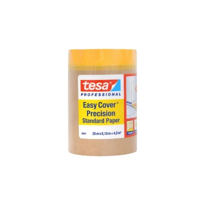 General description Tesa Easy Cover® Precision Standard Paper is a smart 2-in-1 product designed to save time by combining masking and taping off in one step. This covering solution ensures flat and clean paint edges on smooth and slightly structured surfaces, making it an ideal choice for professional paint work indoors. Technical specifications Dimensions: 180mm x 25m Product type: 2-in-1 covering solution combining masking paper and integrated precision crepe