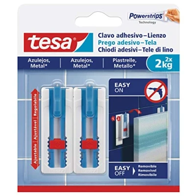 SMART ALTERNATIVE TO SCREWS & NAILS: The tesa adhesive nail canvas is attached without requiring a drill, hammer or any other tool. It’s ideally suited for canvas and stretcher frames. EASY ON & EASY OFF: It’s child’s play to attach the self-adhesive nail easily and quickly. Removing it without a trace is equally easy, and with a new adhesive strip, it can even be reused. POWERFUL ADHESIVE STRENGTH: The proven tesa Powerstrips technology ensures adhesive strength of up to 2kg per adhesive nail. The metal tip of the adhesive nail provides a safe hold for the canvas. ADJUSTABLE: Since the nail head can be moved, you can optimally adjust the nail’s height after attaching, so that the item is optimally presented., Weight: 0.0220462262 pounds, Manufacturer: tesa