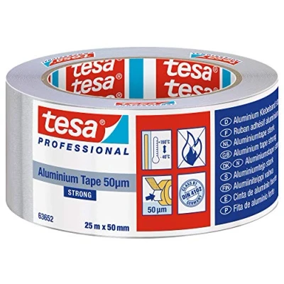 tesa 63652 00001 00 Professional Aluminium Foil Tape for Repairing Ducts and Gutters, 50 mm x 25 m
