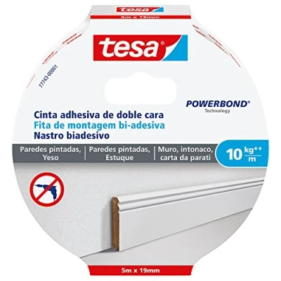 tesa 77743 00001 00 TE77743 SMS Cinta adhesiva de Doble Cara Powerbond 5:19mm para Pared Pintada, Standard, 5x19mm