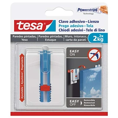 SMART ALTERNATIVE TO SCREWS & NAILS: With the tesa adhesive nail, it’s easy to securely mount a stretcher frame or canvas without drilling. EASY ON & EASY OFF: It’s child’s play to quickly and easily attach the self-adhesive nail, simply take it off without a trace and even reuse it with a new adhesive strip. POWERFUL HOLDING STRENGTH: The proven tesa Powerstrips technology supplies an adhesive strength of up to 1kg per adh. nail. The metal tip of the adhesive nail provides a safe hold for the canvas. ADJUSTABLE: Since the nail head can be moved, you can adjust the height of the adhesive nail at any time after attaching it. Thus, your item will be optimally displayed., Weight: 0.0881849048 Pounds, Manufacturer: tesa