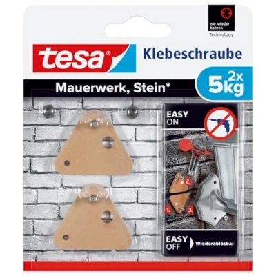 Rectangular adhesive screw for rough, solid surfaces, e.g. clinker brick. Holds objects up to 5 kg per screw (10 kg with two screws). Invisible attachment for narrow objects. Easy to remove. Suitable for indoor or outdoor use., Weight: 0.110231131 pounds, Manufacturer: tesa