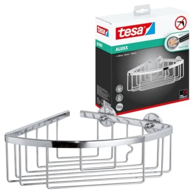 Adhesive-only: The patented tesa Power.Kit technology attaches the tesa Aluxx shower corner shelf with the all-in-one adhesive solution that doesn’t require drilling or additional tools. It provides a highly secure hold. Gleamingly gorgeous: The basket features straight lines, a curved bracket and round wall plates. Along with the chrome finish, this generates a beautiful look that is also waterproof. No worrying about walls or tiles: Since there is no drilling, there is no damage to walls or tiles. Equally, the basket can be quickly taken down, without a trace. Simple to fasten: Everything is included. Sticks to many surfaces: Suited for tiles, metal, natural stone, marble, concrete, wood, glass and various types of plastic. Not suited for wall paper, stucco and other surfaces with non-stick coating., Weight: 0.4188782978 pounds, Manufacturer: tesa