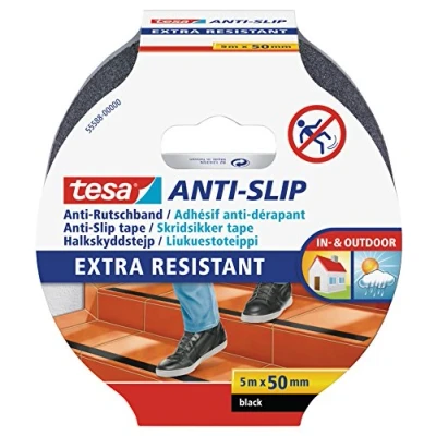 Water resistant anti slip tape: ideal for bathtubs, showers, tubs, stairs and other slippery surfaces Strong acrylic adhesive resists cracking and peeling Easy to apply- simply cut to the needed size with scissors Temperature resistant up to 50° C UV resistant, Manufacturer: tesa