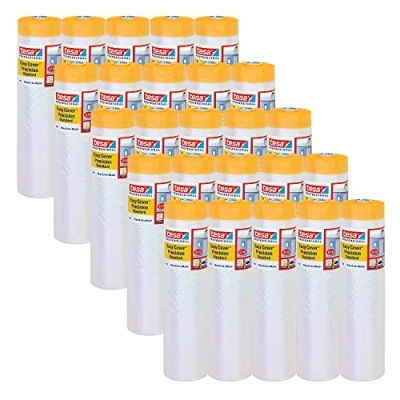 Time-saving: the 2-in-1 solution for painters - translucent masking film combined with the Tesa precision masking 4344 standard - for large protection and optimal work results in one step Precision: precise results when painting and varnishing - the masking tape allows flat and sharp paint edges - suitable for smooth and slightly textured surfaces No drops: the embossing of the masking film prevents the paint from running down on the surfaces to be protected and thus prevents damage caused by paint drops on walls, furniture or floors Indoor and outdoor: the painter's cover film is both UV-resistant and easy to remove indoors for over 3 months and over a month outdoors - suitable for long-term applications Box contents: 20 x Tesa Easy Cover 4402 precision standard, with integrated Tesa precision tape 4344 standard, resistant to all colours, suitable for airless applications, ideal for professional use