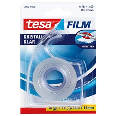 tesa Film Hand Dispenser, Transparent, Includes 1 Roll of Tesafilm Crystal Clear