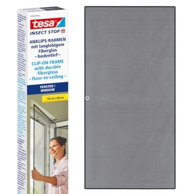 Ingenious clip mechanism: Place the self-adhesive clips onto the window frame and simply click the insect screen into place Thanks to the practical click-in frame, the fly screen can be easily inserted and removed again in winter if necessary, saving time and the need to drill or use tools Durable: The UV-resistant fibreglass netting withstands sunlight and other weather conditions - making it reusable over several summers The fly screen fits on to my window: open the window, place a pencil on the lower part of the window frame - if the window closes easily, the tesa clip-on frame fits After cutting the clip-in frame to size, it fits perfectly into most PVC window frames (if the pencil test is successful) - the windows can be opened, closed and tilted as usual