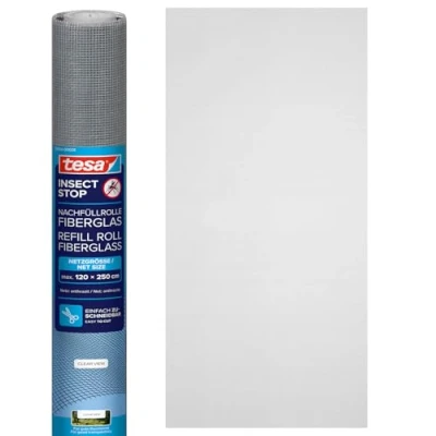 Replacement fiberglass mesh: durable spare net for all tesa aluminum frame insect screens Universal replacement net for tesa INSECT STOP aluminum frames – durable insect protection with easy installation Fly screen replacement is durable and tear-resistant Solid tesa INSECT STOP aluminum frames provide lasting protection replacing with spare rolls is worthwhile Highly UV resistant fly screen for windows and doors resistant to sun aging while allowing light and air flow Scope of delivery 1x tesa INSECT STOP refill roll fiberglass fly screen color anthracite gray size 1.2 m x 2.5 m easy to cut to any size, Weight: 0.02 Pounds, Manufacturer: tesa