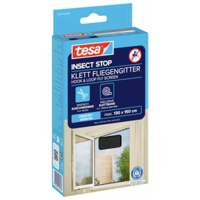tesa Insect Stop Hook & Loop STANDARD for Windows Self Adhesive Window Fly Screen Cut to Desired Size in Anthracite, 130 cm x 150