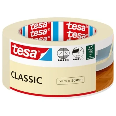 tesa Masking Tape CLASSIC Painter's for During Painting Work Solvent free, Removable without Residue 50 m x mm