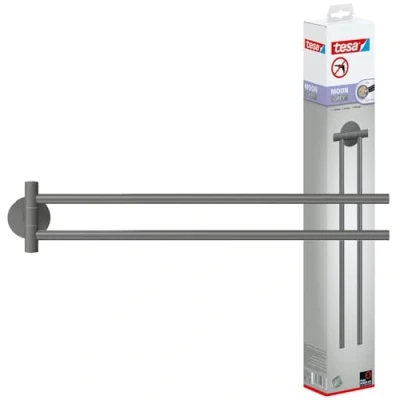 tesa MOON GREY Towel Holder 2 arm, matt grey, for bathroom and WC bathrooms in industrial modern style drill free, incl. adhesive solution 84 mm x 50 456