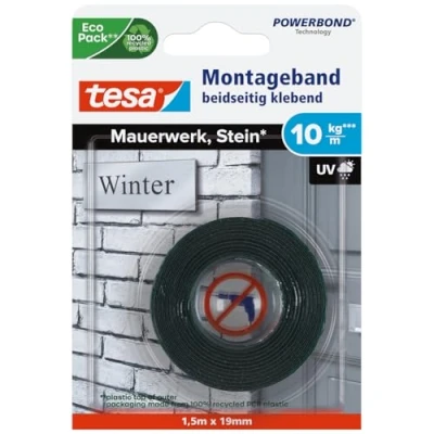 For solid surfaces like brick & stone indoors & outdoors Holds up to 10kg/m For permanent applications Ideal for outdoor applications For optimal results a max. of 6kg per application/objects is recommended, Manufacturer: tesa