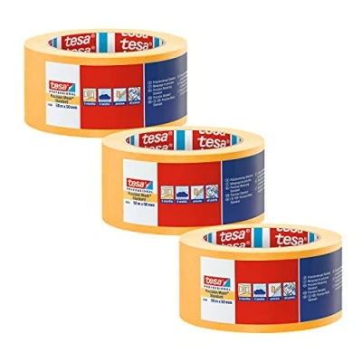 For precise results: painter's tape with thin paper backing and an acrylate adhesive - for masking for professional painting, painting work - sticks to various surfaces Sharp, flat edges: the masking tape ensures extremely precise paint and varnish edges and prevents paint underruns, thanks to the slight transparency of the fine masking tape, it can be aligned very accurately Versatile: the painter's masking tape can be used with standard paint systems, silicate and lime paints as well as solvent-reduced paints and glazes - VOC compliant Indoor and outdoor: thanks to the combination of special backing and an ageing-resistant adhesive compound, the adhesive tape can be easily removed indoors over 3 months and over 4 weeks outdoors Box contents: 3 x tesa precision masking tape 4344 standard, orange painter's masking tape for high-quality painting, ideal for professional use