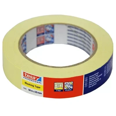 Size - 25mm x 50m. Tesa's 3 Day Masking Tape is suitable for general purpose applications such as masking, holding, sealing, fixing, light duty packaging etc. Tape gives up to 3 days of indoor application without leaving tape residue.