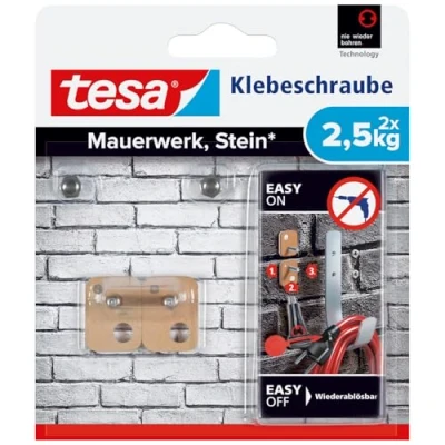 Rectangular adhesive screw for rough, feste surfaces, e.g. clinker brick Holds objects up to 2.5 kg Pro screw (5 kg with two screws) Not visible are attached schmaler objects Removable. Suitable for indoor or outdoor use., Weight: 0.0661386786 Pounds, Manufacturer: tesa