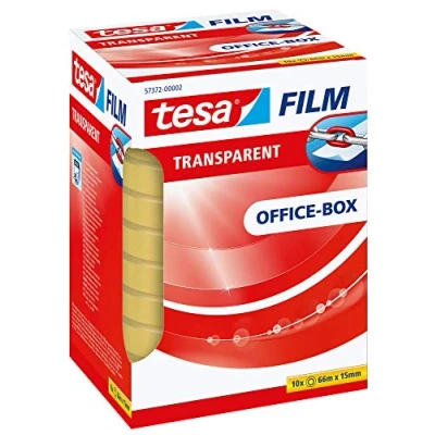 tesafilm transparent self-adhesive tape: universal adhesive tape which can be used for a diverse range of tasks in the office and around the house High quality and long-lasting: strong bonding power and resistant to ageing thanks to the solvent-free adhesive coating and the tear-resistant polypropylene film Fully transparent: due to the tape being see-through it is ideal for sealing envelopes, wrapping gifts, fastening posters to the wall or handicraft projects Convenient and easy application: use in combination with any of the tesafilm handheld or desktop dispensers for silent unwinding and optimal handling for all of your home, office or school needs Product Description Scope of delivery: 10 x tesafilm transparent self-adhesive tape rolls - Dimensions: 66 m x 15 mm Box Contains Adhesive tapes 10 pcs., Weight: 1.23 Pounds, Manufacturer: tesa
