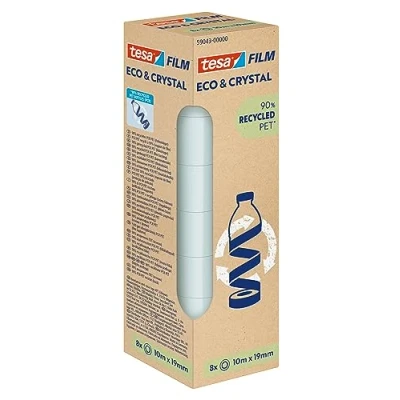 tesafilm Eco and Crystal Adhesive Tape Transparent, Strong Hold Tear Resistant Made from Reprocessed PET Material 8 Refill Rolls, 10m x 19mm