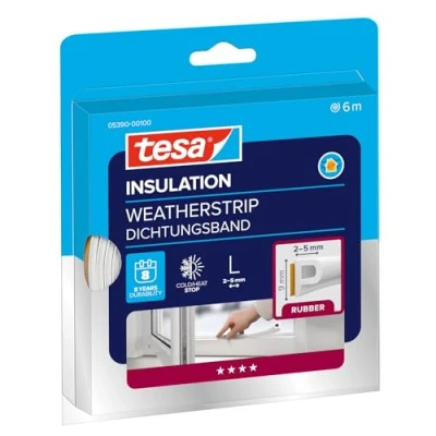 tesamoll P-Profile seal: white rubber seal for insulating window and door gaps from 2 to 5 mm width to improve thermal efficiency A valuable contribution to energy efficiency: by improving the insulation in your own home, you can save up to 35% on heating costs - not only saving money, but also protecting the environment Simple installation: mounting is quick and simple thanks to tesa's proven adhesive technology - simply cut to the desired length and apply to the gaps with the self-adhesive side High durability: with high weather, ozone and UV resistance, this sealing offers durability up to 8 years - 96% of customer satisfaction through the German "TÜV-Nord" certification Scope of delivery: 1 x tesamoll P-Profile seal - Dimensions: 6 m x 9 mm x - Colour: White