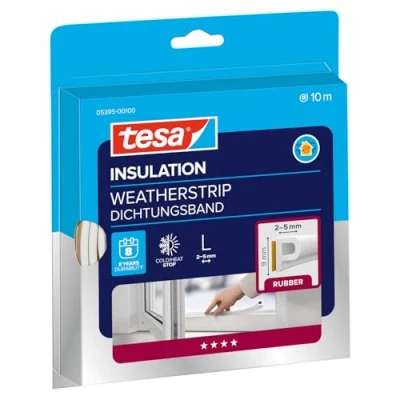 tesamoll P-Profile seal: white rubber seal for insulating window and door gaps from 2 to 5 mm width to improve thermal efficiency A valuable contribution to energy efficiency: by improving the insulation in your own home, you can save up to 35% on heating costs - not only saving money, but also protecting the environment Simple installation: mounting is quick and simple thanks to tesa's proven adhesive technology - simply cut to the desired length and apply to the gaps with the self-adhesive side High durability: with high weather, ozone and UV resistance, this sealing offers durability up to 8 years - 96% of customer satisfaction through the German "TÜV-Nord" certification Scope of delivery: 1 x tesamoll P-Profile seal - Dimensions: 10 m x 9 mm x 5.5 mm - Colour: white, Weight: 0.29 pounds, Manufacturer: Tesa