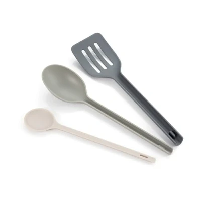 Includes spoon, spoon and scoop - everything you need to cook every day. Made of durable nylon up to 210 degrees Celsius, ideal for everyday kitchen use. Safe on non-stick cookware - won't scratch or damage delicate surfaces. Compact design: utensils stack perfectly to take up minimal space. Lightweight, handy and easy to clean: convenience is guaranteed in every preparation.