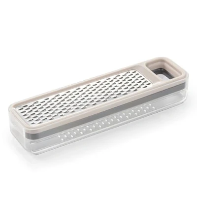 Stainless steel graters with small and large holes, inserted into a container also with a grater on one side. A compact and space-saving set made of high quality stainless steel and durable plastic. Dishwasher safe. Dimensions: 5.8 x 20.5 cm - Height 3.5 cm The set consists of: 1 container, 1 grater with small holes and 1 grater with large holes, Weight: 0.16755131912 Pounds, Manufacturer: Tescoma S.p.A.