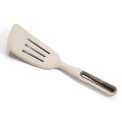 Silicone omelette shovel Resistant up to 220 °C. Suitable for all types of cookware, including non-stick or ceramic. Dishwasher safe and can be hung up thanks to the hole on the handle. Dimensions: 32.7 x 8 x 2.3 cm