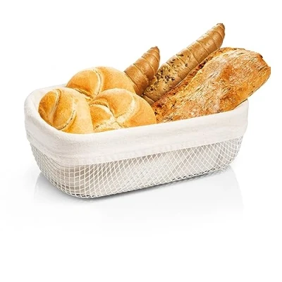 Basket for holding and serving bread Elegant and simple design for casual mise en place Made of a fine mesh produced in enamelled metal with inner lining in cotton cloth Dimensions: 18.5 x 28.5 cm - height 9.5 cm Colour: white, Weight: 0.771617917 pounds, Manufacturer: Tescoma