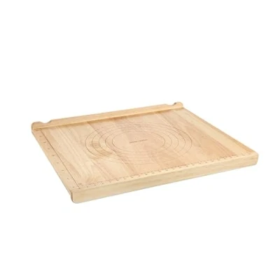 ROBUST AND SPACIOUS: Wooden pastry board ideal for preparing homemade fresh pasta, for working doughs. MEASURING GRIDS: The dough board has linear and round graduated scales to measure dough and cut to size with extreme precision. Raised edge: the raised edge of the board allows it to be held firmly on the worktop on one side; and on the other hand to store the rolling pins thanks to the two grooves. MULTI-PURPOSE: The pastry board is ideal for kneading, rolling out and cutting pizza dough, buns, pastry or shortbread for pies. Dimensions: the spacious board measures 55 x 45 cm - thickness 1.8 cm - edge height 3.5 cm