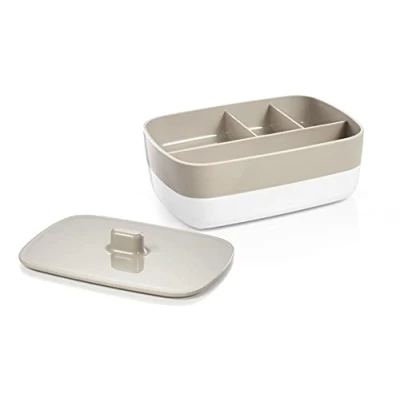 For storing jewellery and small accessories On two levels with six compartments of different sizes Dimensions: 12 x 17 cm - height 7.5 cm Non-slip bottom Durable plastic