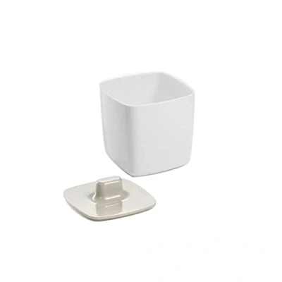 Holds cotton swabs; makeup remover pads Dimensions: 8.5 x 8.5 cm - height 10 cm With lid Non-slip bottom Durable plastic