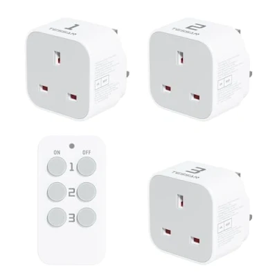 Easy to Operate: 1 remote control to control 3 wireless sockets, just plug in and use, no programming or tools required, easy to control narrow or high hard to reach home appliances, ideal for pregnant women, the elderly and people with mobility problems 30M Remote Control Range: This remote control plug has 30.5M range strong signal, the plug socket with remote light switch can be used through doors and walls, suitable for home, office, school, gym and other occasions Energy Saving: This remote plug socket UK can remotely turn off household appliances as needed, and keep the remote socket turned off after a power outage, which not only protects your devices but also minimizes unnecessary resource waste Magnetic Remote Control Design: The remote control sockets UK package contains magnets and patches, you can place remote switch on the surface of the refrigerator or next to the bed to ensure that the remote control of the remote plug remains within reach Compact Size: The compact design of the TESSAN remote control plugs (5.2 x 5.2 x 3 cm) makes it easy to use when wall sockets are used at the same time without blocking neighbouring sockets, applies to light strings, table lamps, etc