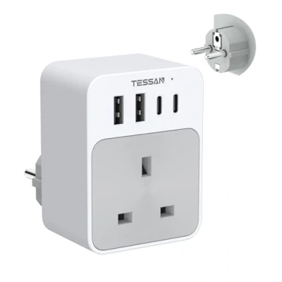 Travel Plug Type E F: Travel adapter UK to Europe is suitable for use in multiple countries, such as Germany, Spain, France, Iceland, Greece, Poland, Portugal, Croatia, Norway, Austria, Netherlands, Turkey, etc (not applicable to Italy) USB 15W Speed Charging: The USB port output is 15W Max, quickly charging for your Phone, Pad, and other devices; Travel Plugs UK to EU is equipped with 4 USB ports, designed to meet the charging needs of various USB devices; Adapter Plug UK to Europe reduces your waiting time for charging 5 in 1 International Travel Adapter: Turkey plug adapter can be expanded to 1 AC Outlet, 2 USB C and 2 USB A; The maximum power of the Euro plug adapter is 3600W, the USB C port output is 15W Max, and the USB A port output is 15W Max; European USB plug can charge 5 devices at the same time, won't need to bring extra adapters Compact and Portable: Size 6 x 8 x 8cm and weight 134g; EU plug adapter to UK fits easily into your travelling bag; And EU travel adapter won't take up too much luggage space, making travel lighter Instruction for Use: The EU adapter plug is not a voltage converter; Make sure your device has an input voltage range of 100 to 250V, and the maximum power of plug adapter Europe to UK is 3600W, Weight: 0.29541943108 Pounds, Manufacturer: Zhuhai Tessan Power Technology Co., Ltd.