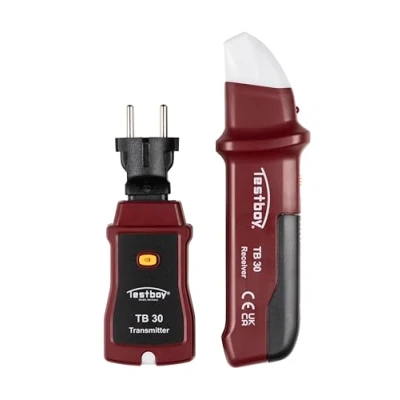 Practical fuse finder: The Testboy 30 is a device set for assigning and identifying circuit breakers to the corresponding socket of the respective circuit. Powerful tool set: The fuse finder with visual and acoustic display consists of the transmitter and the receiver. Special workshop accessories: The high-quality electrician's tool has a break-proof and impact-resistant ABS housing. An automatic switch between test and search mode is also included. Optimal gift idea for do-it-yourselfers: The fuse finder makes every do-it-yourselfer's heart beat faster and is a great gift that you can't go wrong with! Scope of delivery: Testboy 30 fuse finder - assigning circuit breakers to the socket - consisting of transmitter & receiver - incl. bag & batteries - color: red/black.