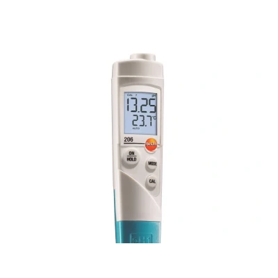 Robust pH/temperature metre for liquids. Measures 0-14pH with ±0.02pH accuracy. 0-60°C temperature range. IP68 waterproof. Auto temperature compensation. Comes with TopSafe protective cap. Ideal for catering industry.