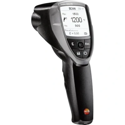 Extended temperature range: reliable measurement up to 1500 °C Four-point laser and 50:1-Optics for precise measurements on Spacer Contact piece measuring from a safe distance, precise capture the moving objects Up to 200 measured values storable, evaluation by bundled software
