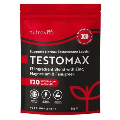 TESTOMAX Testosterone Booster for Men 13 Powerful Active Ingredients & Vitamins Including Zinc, Maca Root Extract, Fenugreek, Ginseng Made in The UK by Nutravita
