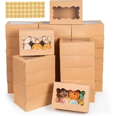 testyu 30 PCS Cookie Boxes with Window, 8x6x3 Inch Cupcake Boxes, Brown Bakery Kraft Pastry for Birthday Weddings Party Supplies