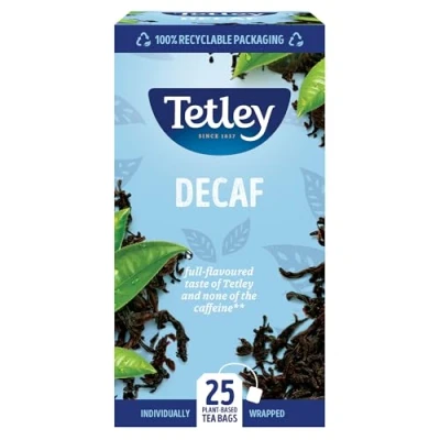 SMOOTH DECAF BLEND: Enjoy the same great Tetley taste, now without caffeine. Decaffeinated to 0.2%, it’s perfect for a relaxing break any time of day, helping you unwind while still enjoying full flavour. INDIVIDUALLY WRAPPED: Each teabag is individually enveloped, ensuring maximum freshness and flavour with every cup. Enjoy a premium tea experience, whether at home, in the office, or on the go. ECO FRIENDLY: Enjoy tea that’s better for the planet! These tea bags are fully compostable, and the envelopes are 100% recyclable, making your tea-drinking experience both delicious and environmentally friendly. ETHICALLY SOURCED: Made with responsibly sourced tea leaves, Tetley is proud to be Rainforest Alliance Certified, supporting sustainable farming and fair conditions for growers. A TRUSTED FAVOURITE: With a heritage of over 180 years, Tetley’s expertly crafted black tea is loved across the UK, making every cup a comforting, flavourful experience.