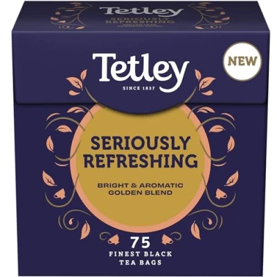 Britain's Tea - Tetley Seriously Refreshing blend delivers a bright and full-flavoured brew crafted for today’s tea drinkers - the classic Tetley comfort, made a touch more uplifting Seriously Refreshing Taste - A smooth, golden blend that lifts your day with every sip - full-bodied yet easy to drink, bringing a little comfort and care to life's busy moments Everyday Value - Quality you can taste in every mug. Tetley brings smooth, satisfying flavour and honest value to your daily brew - great-tasting tea made for everyone to enjoy, every day Your Brew, Your Way - Enjoy these black tea bags your way: bold or mellow, with a splash of milk or as it comes. Tetley's smooth and balanced flavour makes a proper British brew, any time of day Ethical Choice - Every Tetley blend is made with care for people and planet. Rainforest Alliance certified teas help support responsible farming and better futures for the communities who grow our tea.