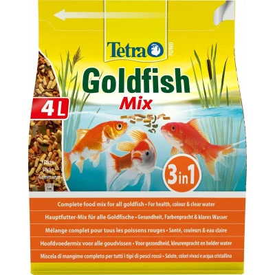 General description Goldfish and their varieties, such as shubunkins and comets, are the most popular fish for garden ponds and water features. TetraPond Goldfish Mix has been specifically formulated to provide a complete, premium diet for goldfish kept outdoors. It consists of four different types of food sticks, Spirulina flakes, and river shrimp. Technical specifications Weight: 560g Volume: 4L