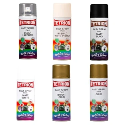 COMPLETE MULTIPACK SELECTION: Includes Clear Lacquer for protection, Hi-Build White Primer for strong adhesion, Matt Black, Matt White, Bright Gold, and Gold finishes. DIY FRIENDLY: Premium acrylic spray paint designed for both tradespeople and hobbyists, ensuring consistent, reliable results. MULTI-SURFACE COMPATIBILITY: Works on wood, metal, plastic, and more, delivering smooth, even coverage for indoor and outdoor projects. DURABLE & LONG-LASTING FINISH: Weather-resistant formula protects against wear, fading, and corrosion, keeping surfaces looking fresh. FAST-DRYING 400ML CANS: Quick-dry technology allows efficient project completion with generous coverage per can., Manufacturer: Tetrosyl Ltd