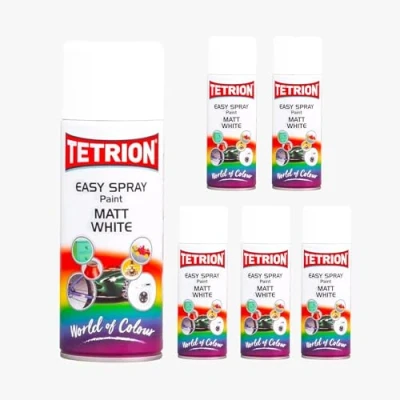PACK OF 6: Each can contains 400 ml of high-quality acrylic-based spray paint. Ideal for DIY projects with fast and efficient coverage, ensuring a professional finish every time VERSATILE APPLICATION: Tetrion Easy Spray can be used on metal, wood, ceramic, and plastic surfaces, offering a smooth and durable finish that enhances the aesthetics of your projects QUICK-DRYING FORMULA: Features a rapid-dry technology allowing you to apply multiple coats efficiently. Perfect for both novice and seasoned DIY enthusiasts seeking quick project turnaround LONG-LASTING PROTECTION: This durable paint provides resistance against wear and tear, offering long-lasting protection and vibrant colour retention on multiple materials for exterior and interior use EASY TO USE: With its user-friendly aerosol design, Tetrion Easy Spray is simple to operate, making it an essential addition to your DIY toolkit. Achieve stellar results with minimal effort