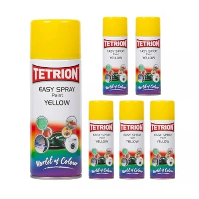 Tetrion Easy Spray Multipurpose Yellow Paint 400 ML Quick Drying High Visibility Pack of 6 for Metal, Wood, Ceramic, Plastic and More, Durable Glossy Finish