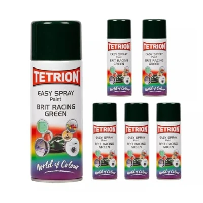 PACK OF 6 CANS: This Tetrion Easy Spray pack includes 6 cans in British Racing Green, ideal for fast coverage on various surfaces like wood, ceramic, and plastic SUPER VERSATILE: Tetrion spray paint is perfect for use on metal, wood, ceramic, and plastic surfaces. Achieve a stunning, professional finish with ease USER-FRIENDLY FEATURES: Our aerosol spray paint features quick-drying technology, making it perfect for any DIY enthusiast seeking efficient painting supplies QUICK-DRYING BENEFITS: Tetrion's formula dries rapidly, ensuring efficient coverage. Ideal for those seeking high-quality results without long waiting times DURABLE APPLICATION: This spray paint delivers a lasting finish, offering long-term protection against wear and tear on numerous materials